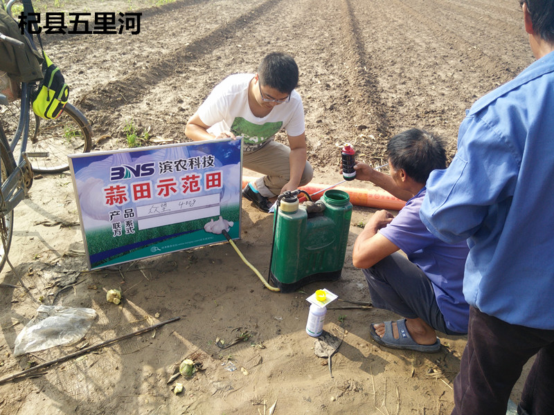 農(nóng)資經(jīng)銷(xiāo)商專(zhuān)題報(bào)道——蒜田系列除草產(chǎn)品示范試驗(yàn)該怎么做?濱農(nóng)科技有奇招發(fā)布時(shí)間:2018-08-29 08:59大蒜因茬口和輪作方式不同草相比較復(fù)雜,且具有發(fā)生期早、發(fā)生量大,發(fā)生期較長(zhǎng)等特點(diǎn),人工除草難度大。若不采取化學(xué)除草,雜草與大蒜爭(zhēng)光、爭(zhēng)水、爭(zhēng)養(yǎng)分,造成大蒜減產(chǎn)和品質(zhì)下降,一般減產(chǎn)20%-30%,嚴(yán)重的減產(chǎn)50%以上。所以做好化學(xué)除草是大蒜優(yōu)質(zhì)高產(chǎn)栽培的必要措施之一。 大蒜雜草危害出現(xiàn)2個(gè)高峰期,分別為冬前和春天,不同地區(qū)雜草發(fā)生差異較大,除常見(jiàn)薺菜、播娘蒿外,以大蒜-水稻輪作的地區(qū),看麥娘、牛繁縷、繁縷發(fā)生嚴(yán)重,大蒜-玉米輪作地區(qū),野燕麥、豬殃殃、田旋花發(fā)生嚴(yán)重,且近幾年草相也在逐漸發(fā)生變化,如鐵莧菜、婆婆納、馬唐、牛筋草、狗尾草、馬齒莧等,部分雜草地塊集中性發(fā)生。部分雜草較難防治,如豬殃殃、田旋花等,種子掩埋較深,出土?xí)r間長(zhǎng),生長(zhǎng)繁殖能力強(qiáng)等原因,封閉效果差。 一、大蒜田除草劑的選擇是增產(chǎn)增收的關(guān)鍵,如何選擇? 1、看企業(yè)、品牌和銷(xiāo)量:選擇正規(guī)大企業(yè),產(chǎn)品和服務(wù)有保證; 2、看含量:含量高,藥量足,效果好。 3、看配方: 由于常年用藥,雜草產(chǎn)生了抗藥性,此外蒜田雜草多為禾本科及闊葉類(lèi)雜草混發(fā),使用單劑類(lèi)產(chǎn)品效果不理想,因此盡量選擇多元復(fù)配的除草劑。 4、看成分:多年使用除草劑發(fā)現(xiàn),乙草胺對(duì)大蒜的傷害越來(lái)越重,導(dǎo)致大蒜苗黃、苗弱、根系不發(fā)達(dá),盡量選擇安全性高的不含乙草胺的產(chǎn)品。 二、選擇濱農(nóng)科技蒜田產(chǎn)品的理由 1、企業(yè):山東濱農(nóng)科技有限公司是全國(guó)最大的選擇性除草劑生產(chǎn)企業(yè),確保所生產(chǎn)的每一瓶除草劑產(chǎn)品的質(zhì)量,提供全面的市場(chǎng)及技術(shù)服務(wù)。 2、產(chǎn)品——50%乙氧·異·甲戊乳油: (1)50%含量高,三元復(fù)配,擴(kuò)大殺草譜提高了除草效果,同時(shí)延緩了雜草抗性;(2)關(guān)鍵是解決了乙草胺藥害問(wèn)題,濱農(nóng)蒜田除草劑引用國(guó)內(nèi)較為高端的異丙甲草胺代替乙草胺,不傷根,不傷苗,解決雜草危害,提升了大蒜產(chǎn)量和品質(zhì)。 三、濱農(nóng)蒜田系列產(chǎn)品藥效展示