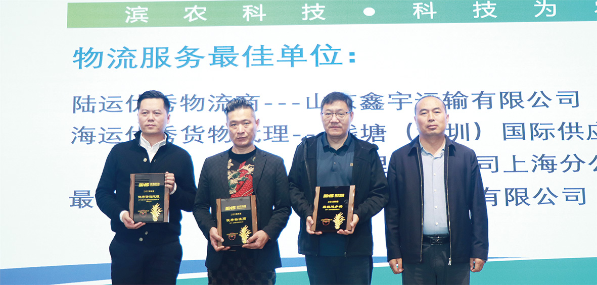 會上,物流部主任謝云東誠摯歡迎承運商參會,并感謝長期以來對公司的支持。物流部主管詳細匯總并分析了陸運運輸過程中出現的各類問題,并提出了相應的解決方案,同時對下一步運輸提出了更高要求。海運訂艙專員介紹了對海運工作具體情況,對比分析了出口數據,對各合作貨運代理進行了評價并提出了針對性要求。謝主任從濱農的生產經營情況、物流主要工作、存在的問題及改進措施、下一步工作計劃等四個方面進行了全面解讀,圍繞運輸效率提升、成本控制、服務質量優化等多個方面提出了具體要求,為后續合作明確了方向;此外,依據承運商年度合作評價標準對所有物流商進行了評分展示,最終,山東鑫宇運輸有限公司榮獲“陸運優秀物流商”,錢塘(深圳)國際供應鏈管理有限公司上海分公司榮獲“海運優秀貨物代理”,山東華業物流有限公司獲評“最佳進步物流商”。業務跟單服務部經理張倩結合當前國際形勢對出口業務的影響,對貨運代理提出了專業詳細要求,以確保貨物安全高效出運。最后,副總經理郭安勇深刻剖析了宏觀經濟形勢及行業競爭態勢,結合濱農“雙百目標”,與承運商展望合作前景,明確責任與義務,共同追求服務質量的提升。