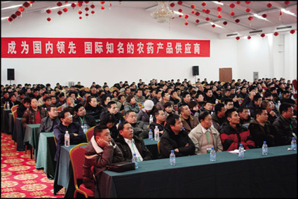 黃總講話之后,我公司事業部經理張于法、李永奎分別對明年的營銷思路和政策作了解析。下午,我公司產品經理高三土、劉杰分別針對明年上市的新產品作了詳細講解。之后,山東農業大學王開運教授作了專題授課,重點講解了中國農藥行業的研發、推廣現狀及未來世界農藥的發展趨勢,頗受好評。