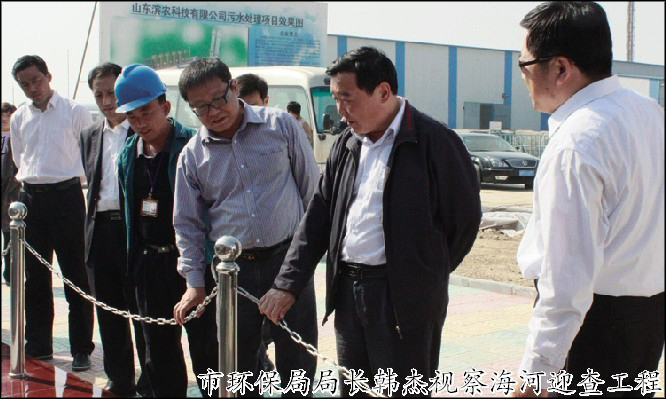 10月13日,市環(huán)保局局長韓杰、海河迎查領導小組副組長王惠軍等市、區(qū)環(huán)保局領導來我公司督查海河迎查工作,公司總經(jīng)理任立明、水處理車間主任助理穆海濱接待并陪同。韓局長對我公司海河迎查工作進展情況給予充分肯定,要求各縣區(qū)領導及相關企業(yè)來我公司參觀學習“海河迎查樣板工程”,同時,就我公司海河迎查工作現(xiàn)期存在的問題提出了指導性意見和建議。