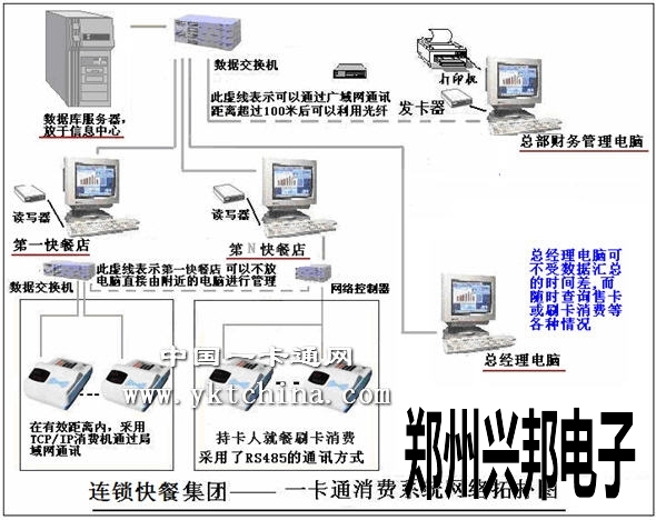 興邦連鎖快餐店儲(chǔ)值消費(fèi)一卡通系統(tǒng)要求實(shí)現(xiàn):所有持卡人員,只要手持一張智能卡,就可以完成本企業(yè)現(xiàn)有分布在全國的全部連鎖店內(nèi)的刷卡消費(fèi)。
